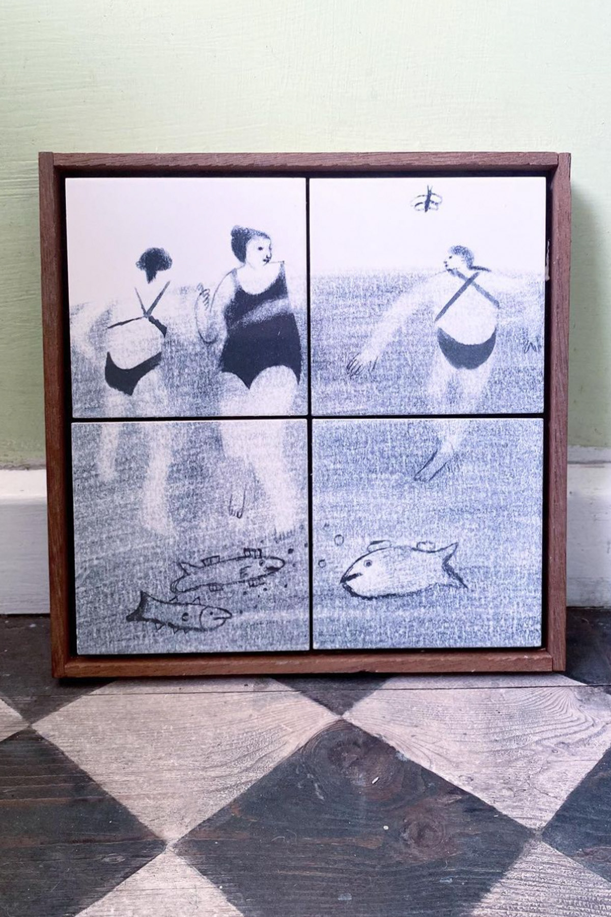 Custom reworking of our 'A History of London' mural, picking out favourite scenes and resetting them and also mixing in 3 new tile illustrations personal to the family