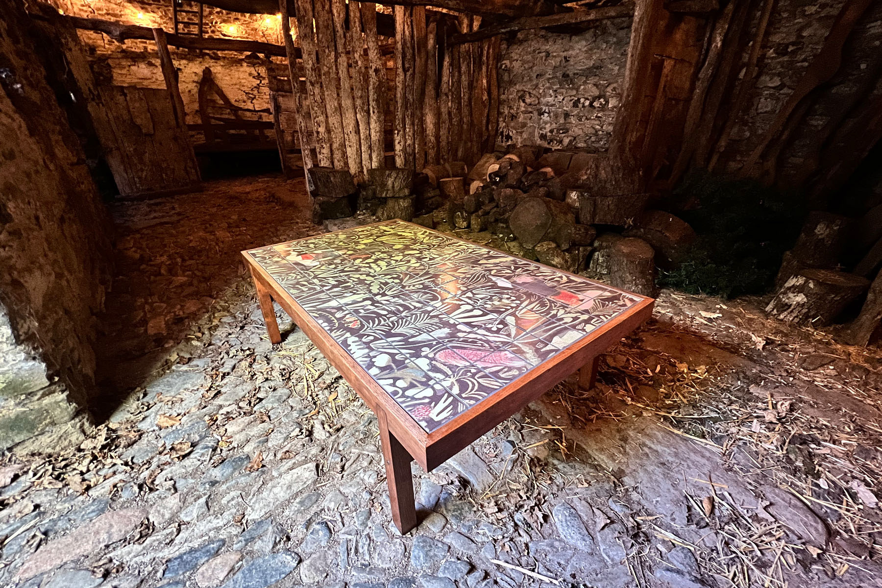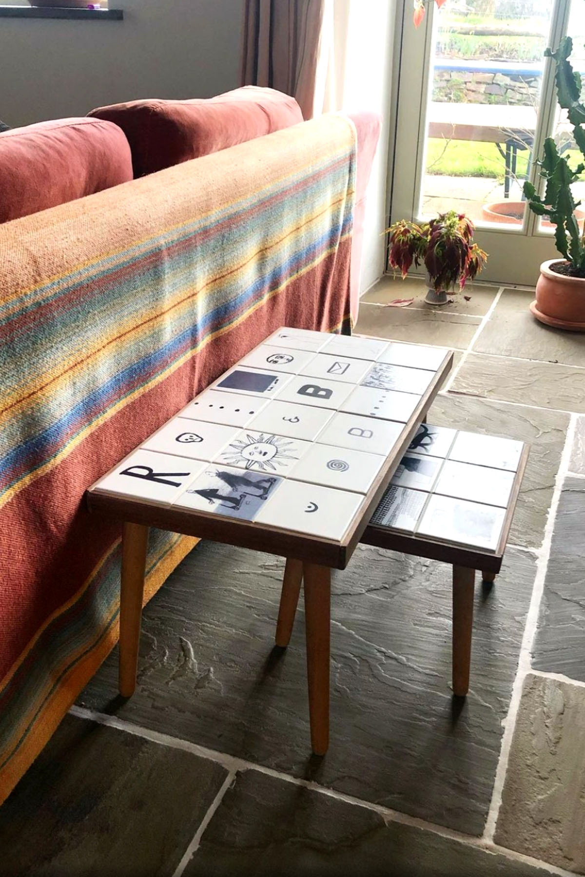 'Bologna' tiled table made as a one-off piece which we restored in-house replacing the original top with our own tile mural
