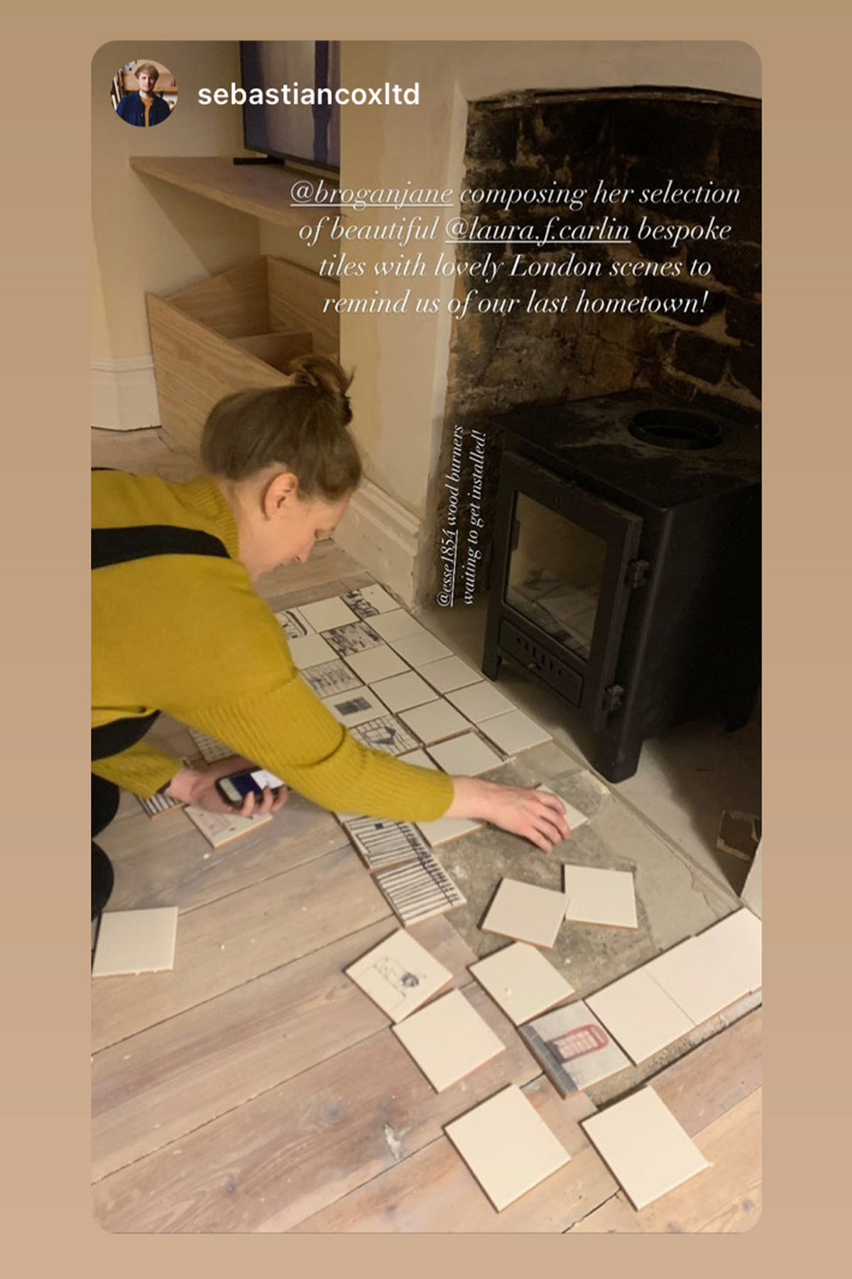 Bespoke tiles for a client's fireplace, coloured to compliment their house renovation