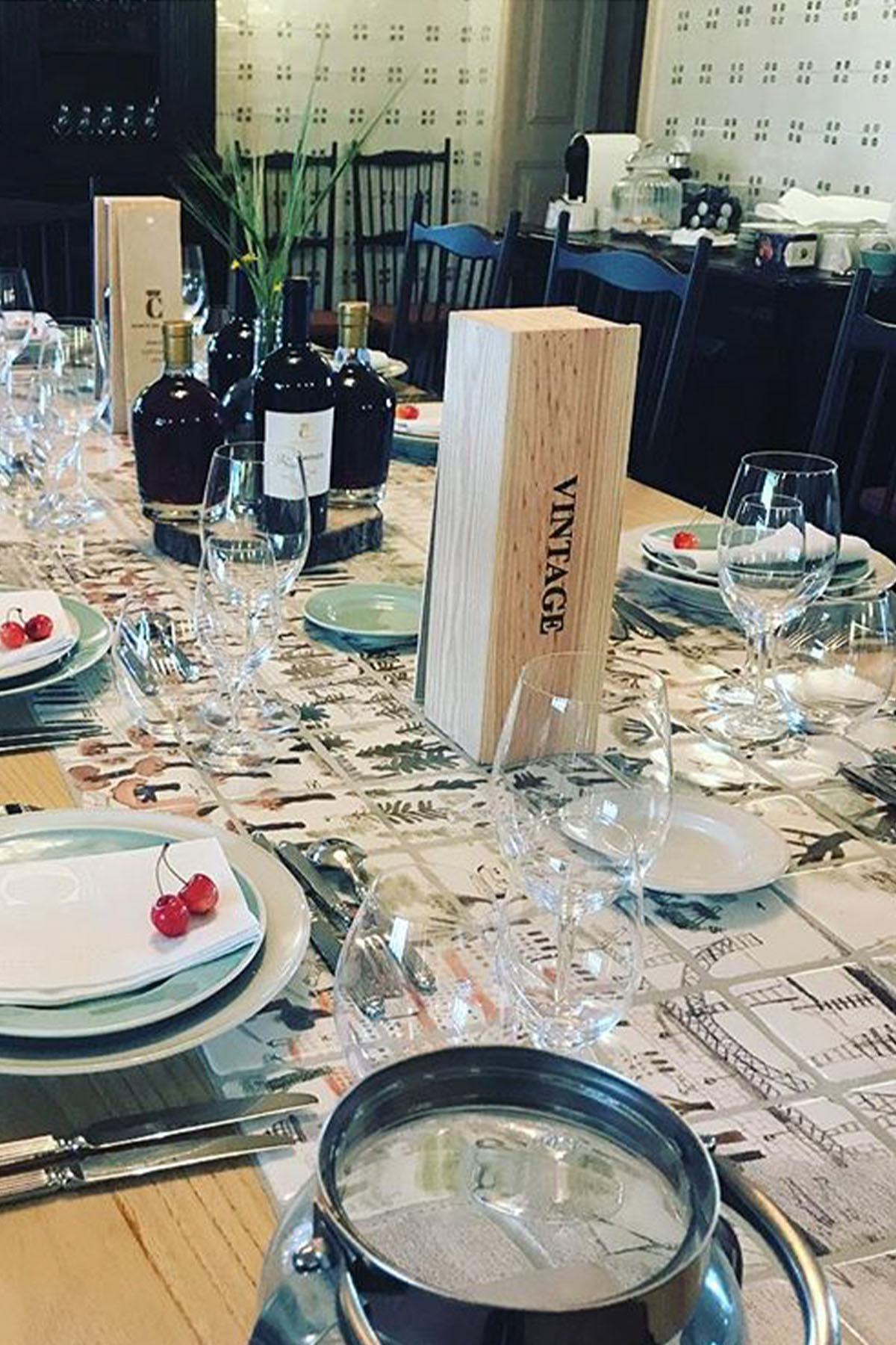300 tile mural depicting the Douro region, set into a bespoke handmade dining table commissioned by Pierre Yovanovitch for Quinta Da Côrte